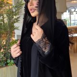 عبايه مخمل كوري مزينه بالدانتيل الايطالي الفخم